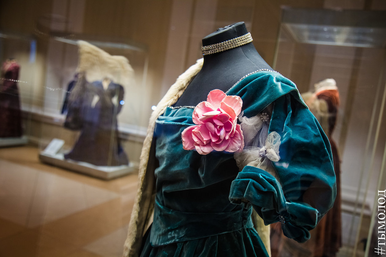 За каждым нарядом – своя история. Здесь есть костюм из стеганого шелка, который Коко Шанель подарила Майе Плисецкой. Платье, сшитое Галиной Брежневой. Платье Юлии Борисовой из спектакля «Варшавская мелодия», ради которого пришлось изрезать другой наряд, чтобы сделать вставки из тюля. Платье в стиле хиппи, принадлежавшее Татьяне Анциферовой, спевшей на закрытии Олимпиады-80 «До свидания, Москва». Костюм «Перестройка», в котором выступала Лайма Вайкуле, считавшаяся иконой стиля в 90-е годы.