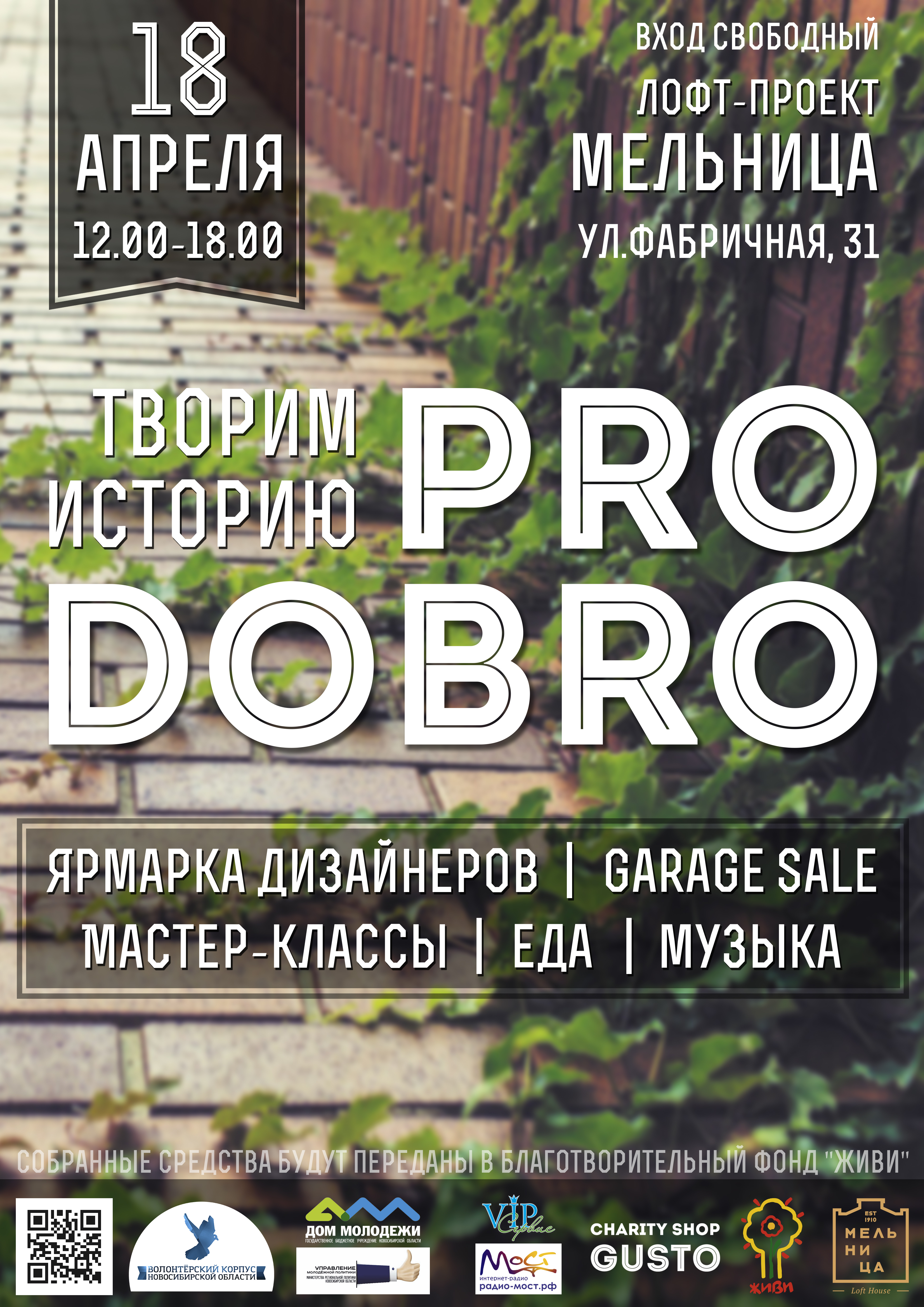 18 апреля в лофт-проекте «Мельница» состоится мероприятие PRODOBRO. В рамках него пройдет распродажа одежды, ярмарка новосибирских дизайнеров, творческие мастер-классы для всех желающих. Вырученные средства будут переданы в фонд «Живи».