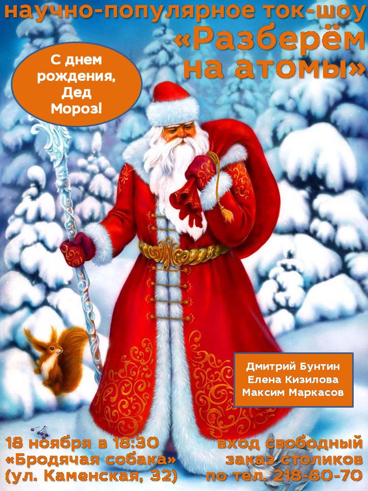 Информационный центр по атомной энергии Новосибирска приглашает всех в кабаре-кафе «Бродячая собака» на научно-популярное ток-шоу «Разберём на атомы» 18 ноября.