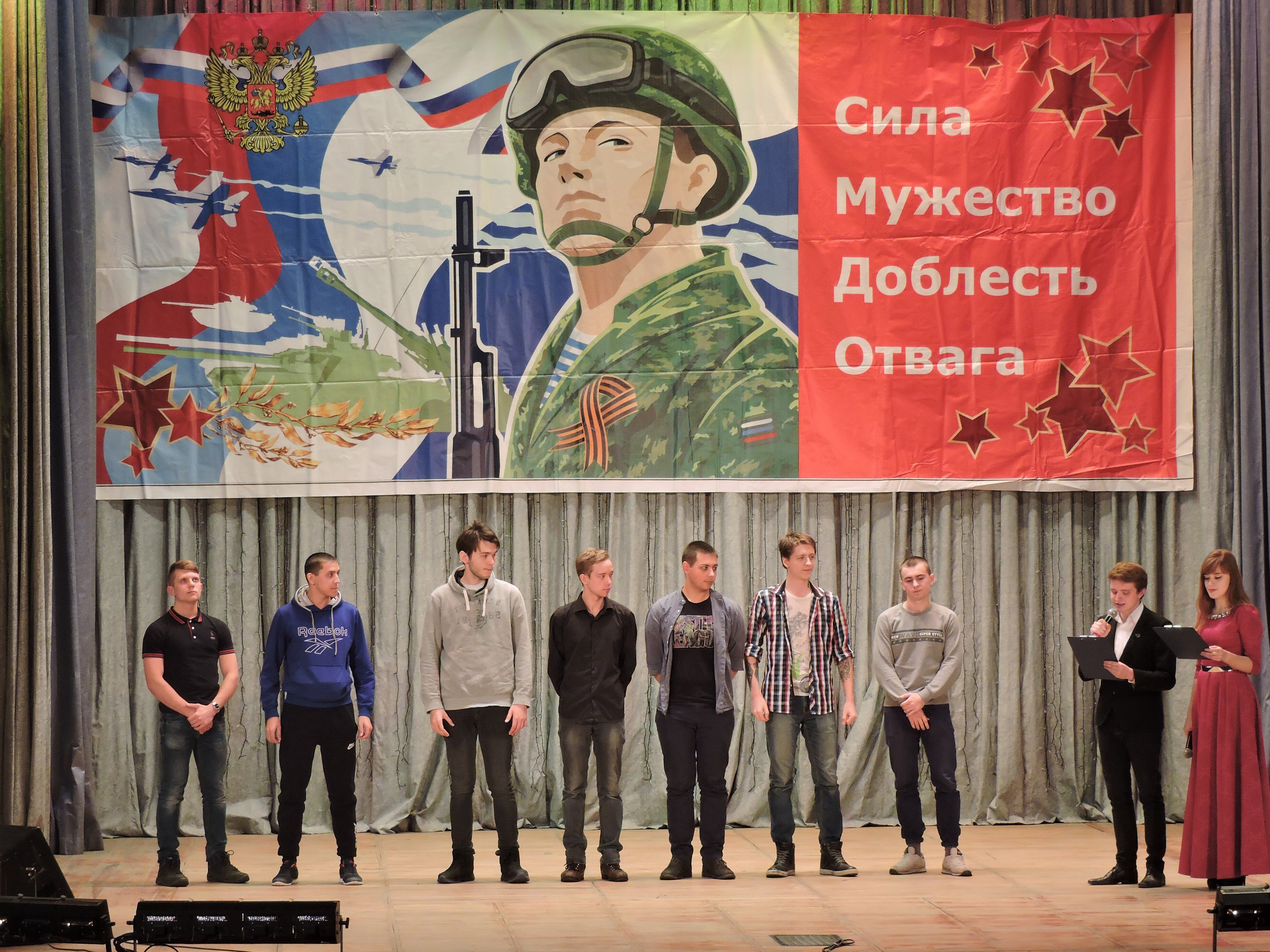 Это светское мероприятие, посвящённое осеннему призыву в армию. Поэтому дресс-код, красная дорожка, молодёжная тусовка в фойе, атмосфера, фотоотчёт, важные персоны – это обязательно будет. Форма мероприятия «кино-театр» говорит сама за себя. Здесь будет всё: скетчи, действие с элементами реалити-шоу, интерактив зала, концертные номера, слайд-шоу, бешеные овации – всё, чему положено быть на премьере.