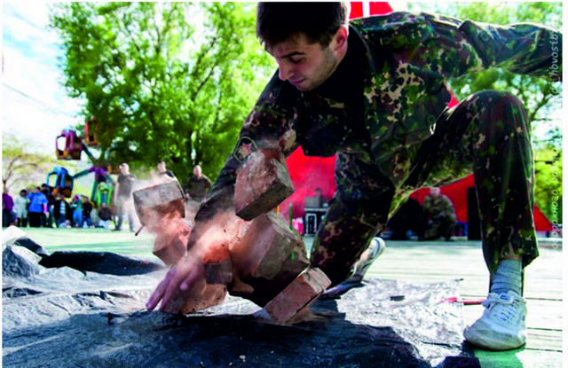 С показательными номерами выступили воспитанники клуба военно-патриотического направления РОСТ, спортивной секции ушу – каждый участник праздника мог научиться приемам самозащиты, и даже собрать и разобрать автомат.