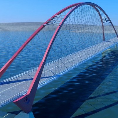 На данный момент идёт возведение арки, несущей конструкции моста, которую специалисты ООО «Сибмост» устанавливают уникальным способом – методом надвижки, который ранее ни разу не использовался в мировой практике – две части арки соединятся на высоте 70 метров над поверхностью реки. Разработали такой необычный проект в Санкт-Петербургском ЗАО «Институт «Стройпроект».