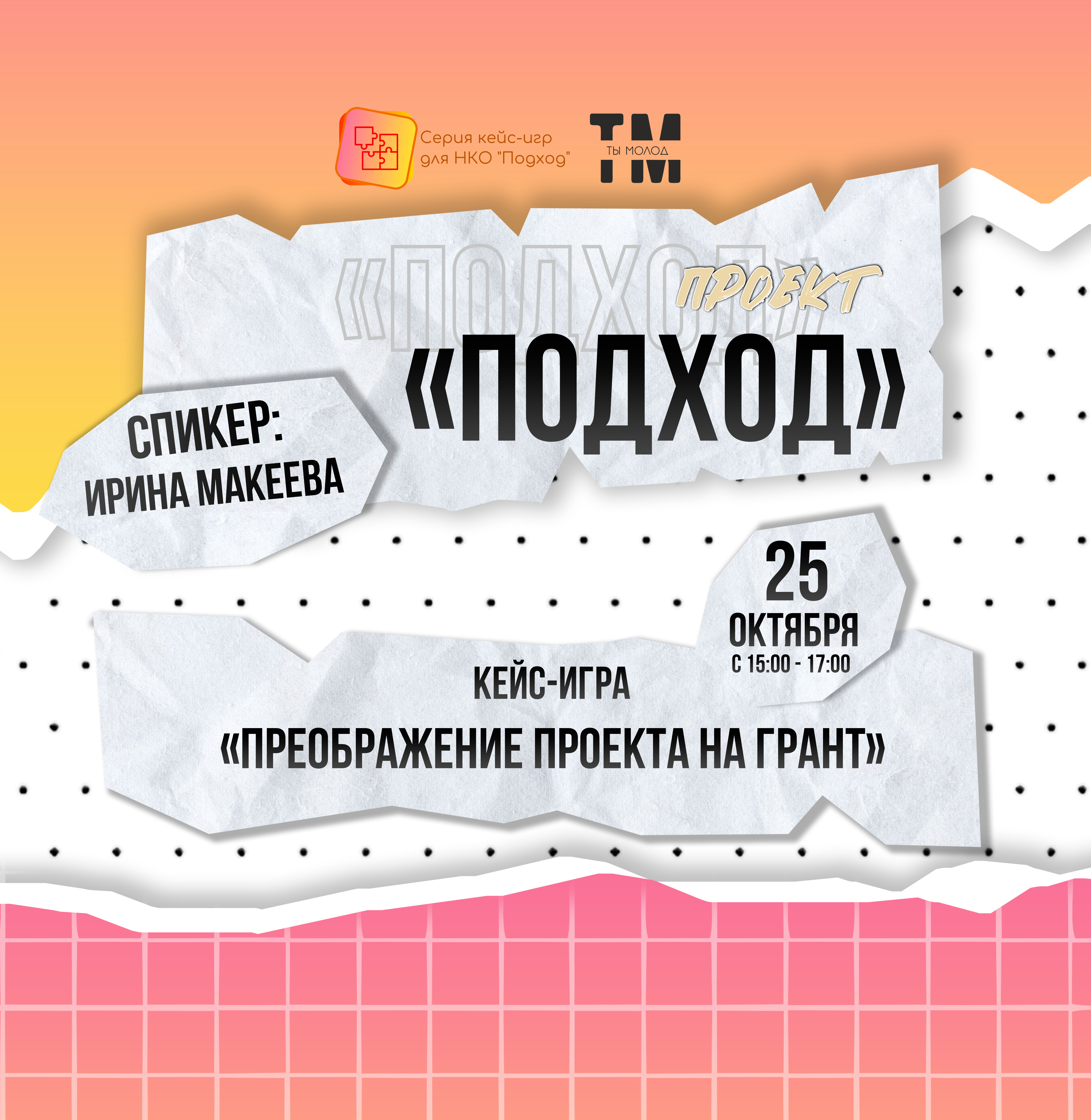 Хочешь реализовать крутой проект но «недостаточно золота»? Совсем скоро, ты научишься финансово реализовывать свою инициативу, а поможет тебе в этом кейс-игра проекта «Подход» - «Преображение проекта на грант»!