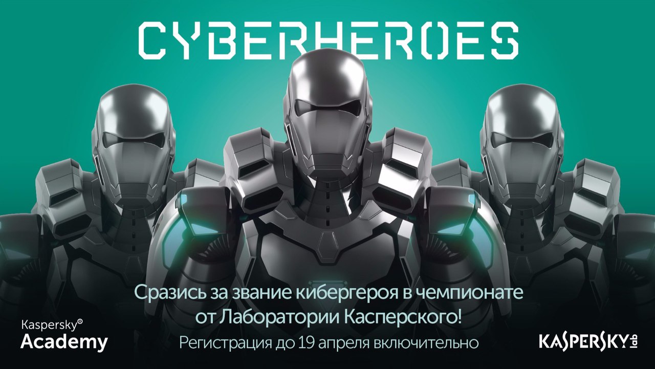 Лаборатория Касперского до 19 апреля предлагает вступить в ряды новоиспечённых кибергероев на чемпионате Kaspersky CyberHeroes.