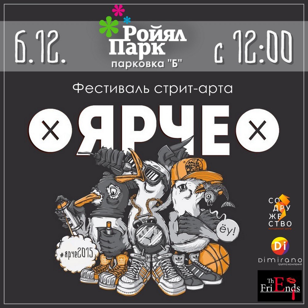 6 декабря с 12:00 до 20:00 в ТРК «Ройял парк» на парковке Б пройдет молодежный фестиваль стрит-арта «Ярче».