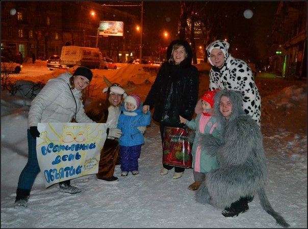 Вечером 21 января но улице Сибиряков-Гвардейцев, недалеко от стелы «Звезда», можно было встретить костюмированных молодых людей, горячо желавших обнять всех прохожих и подарить улыбку спешащим горожанам. Такое нестандартное для Молодёжного совета мероприятие явно разрядило будничную обстановку и заставило «встряхнуться» горожан.