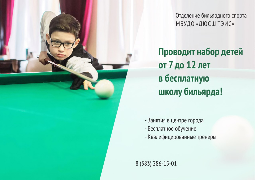 Если Вы желаете привить своему ребёнку, брату или сестре навыки логического мышления, записывайте в школу бильярда. Здесь ребята найдут верных друзей, чутких наставников и новое увлечение.