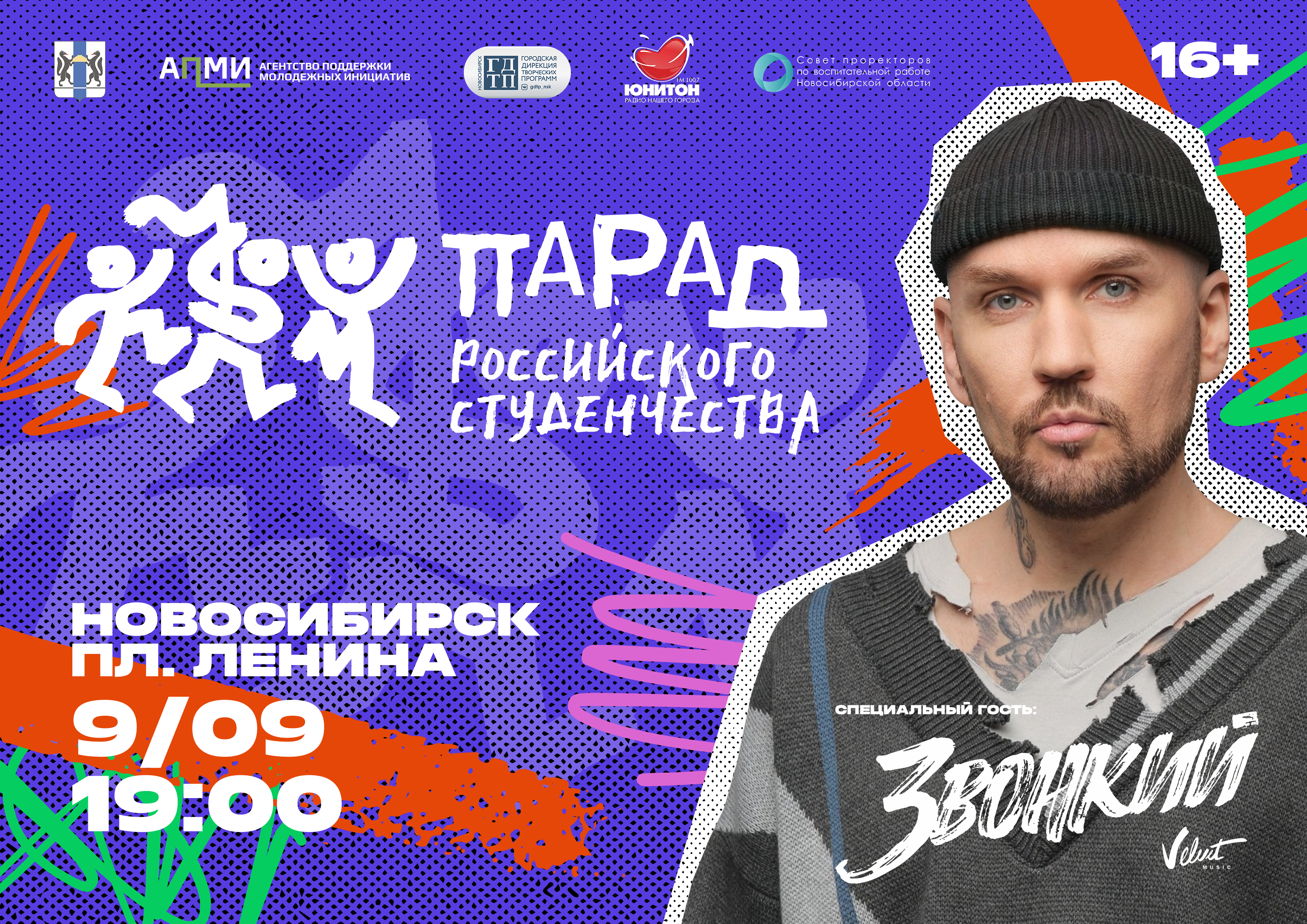 Организаторами Парада Российского студенчества в Новосибирской области выступают Министерство образования Новосибирской области, Агентство поддержки молодёжных инициатив, Совет проректоров по воспитательной работе образовательных организаций