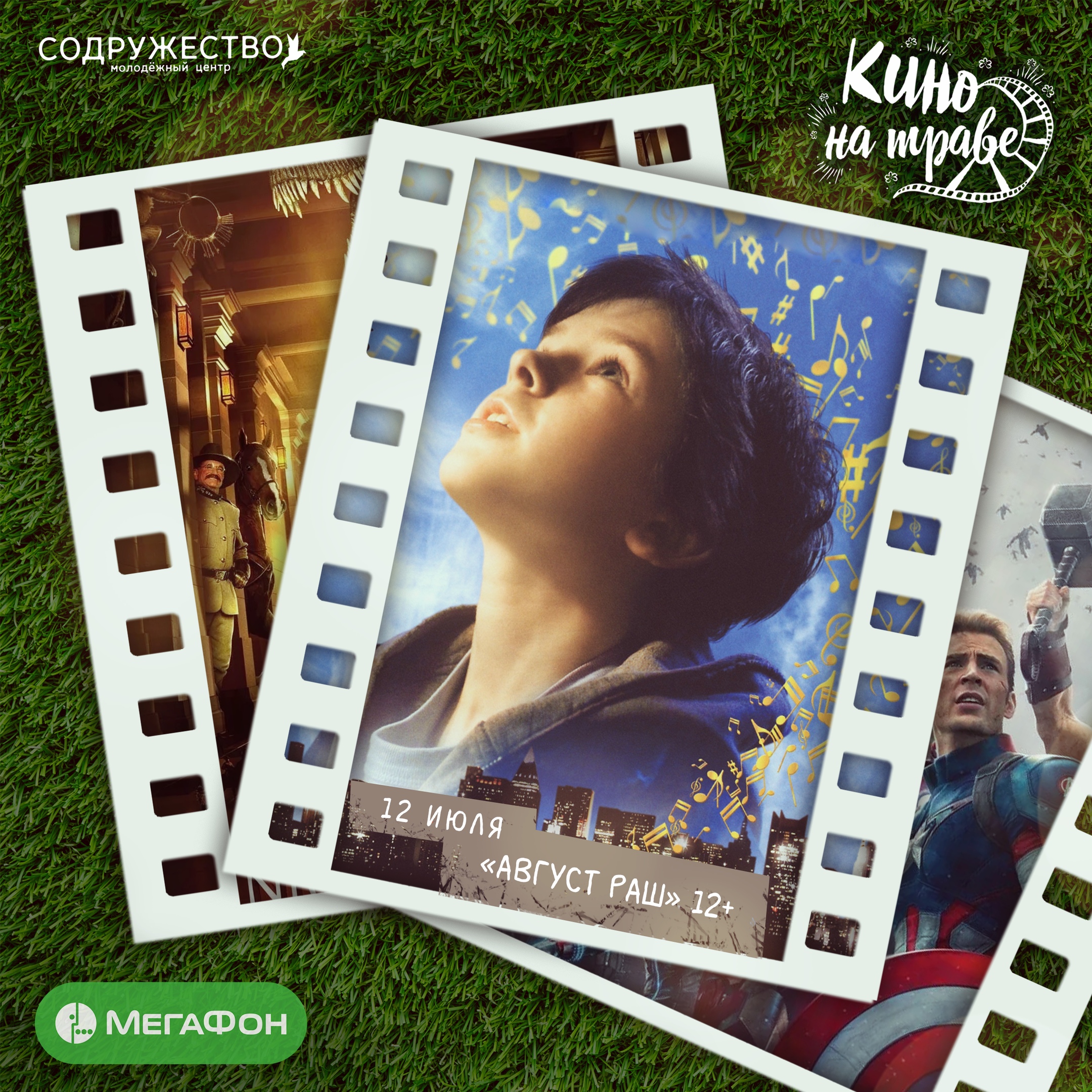 21:00 — розыгрыш подарков от центра «Содружество» и партнёров «Кино на траве».