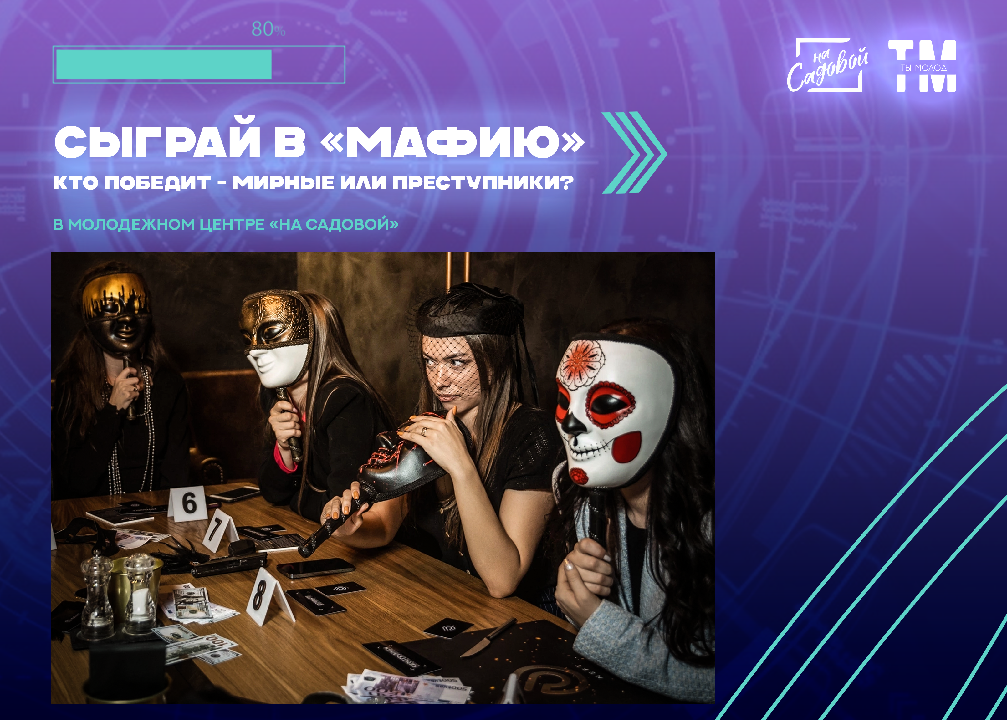 Совсем скоро, в молодежном центре «На Садовой» состоится увлекательная игра в «Мафию», где ты сможешь примерить на себя роль коварного мафиози, бдительного шерифа, спасающего доктора или беспощадного маньяка вместе с игромастером PERESTRELKA!