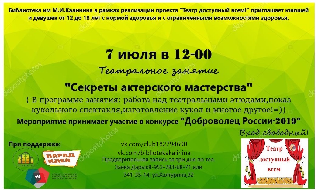 7 июля состоится театральное занятие «Секреты актерского мастерства».