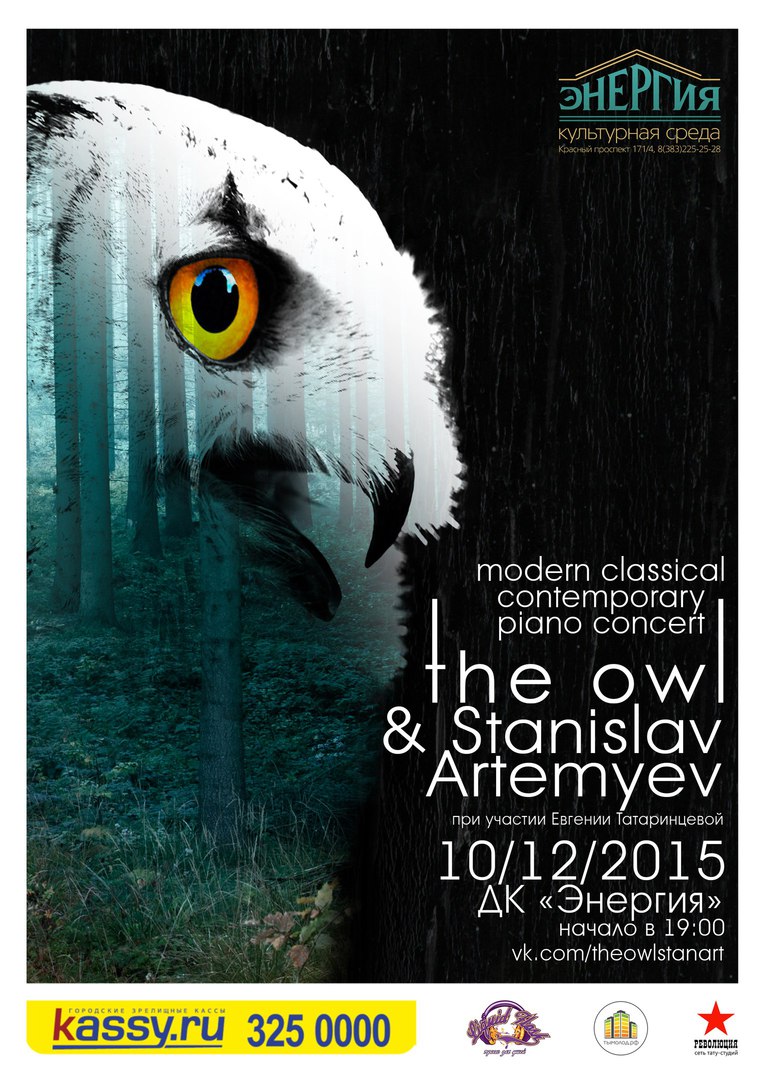 10 декабря в Культурной Среде «Энергия» (Красный проспект, 171/4) состоится вечер авторской инструментальной музыки, – концерт двух молодых композиторов the owl (Новосибирск) и Станислава Артемьева (Томск).