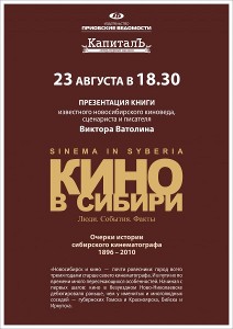 23 августа в литературном магазине «КапиталЪ» состоится презентация книги известного новосибирского киноведа, сценариста и писателя Виктора Ватолина «КИНО В СИБИРИ. Очерки истории сибирского кинематографа. 1896 – 2010», подготовленной к выходу в свет издательством «Приобские ведомости» при содействии Министерства культуры правительства Новосибирской области.