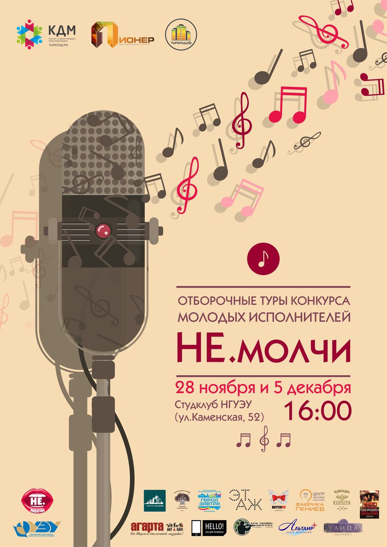 28 ноября и 5 декабря в 16:00 в Студклубе НГУЭУ (ул. Каменская, 52) пройдут отборочные этапы конкурса молодых исполнителей «НЕ.молчи».