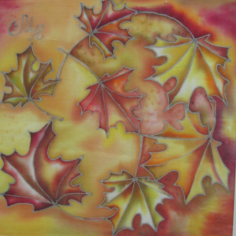 На персональной выставке в НГКМ Ирина Михайленко представляет работы, выполненные в технике горячего и холодного батика на шелковых и хлопчатобумажных тканях.