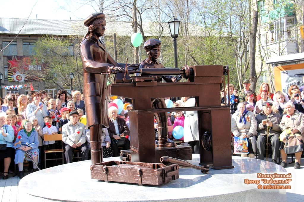 Все рекомендации были учтены в концепции скульптурной композиции. Памятник представляет собой – женщину и ребенка, работающих у станка в годы Великой Отечественной войны 1941—1945 гг.