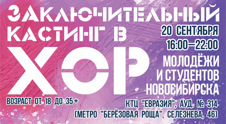 В 2017 году стартует уникальный в масштабах Сибири проект – начнёт свою деятельность Хор молодёжи и студентов г. Новосибирска! Участниками коллектива станут студенты ВУЗов и СУЗов, выпускники школ и студий Новосибирска, работающая молодёжь, исполнители в возрасте от 18 до 35 лет. Дважды в неделю хористы будут проводить репетиции под руководством дирижёра, доцента Новосибирской государственной консерватории имени М.И. Глинки, художественного руководителя Сводного детского хора Новосибирской области, главы Ассоциации педагогов-хормейстеров Новосибирской области, лауреата многочисленных конкурсов Елены Рудзей. Репертуар хора составят произведения различных стилей и направлений от ранней музыки до современности: жемчужины мировой классики, джаза, фолк, рок. Свои достижения коллектив будет регулярно демонстрировать на концертных площадках нашего города и области, а также в рамках всероссийских и международных фестивальных, конкурсных и гастрольных проектов.