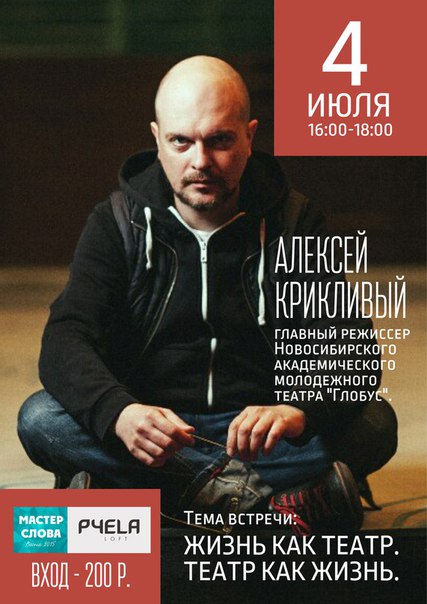 4 июля в лофте «Пчела» пройдет очередная встреча в рамках образовательного проекта «Мастер слова». Тема встречи: Жизнь как театр. Театр как жизнь.
