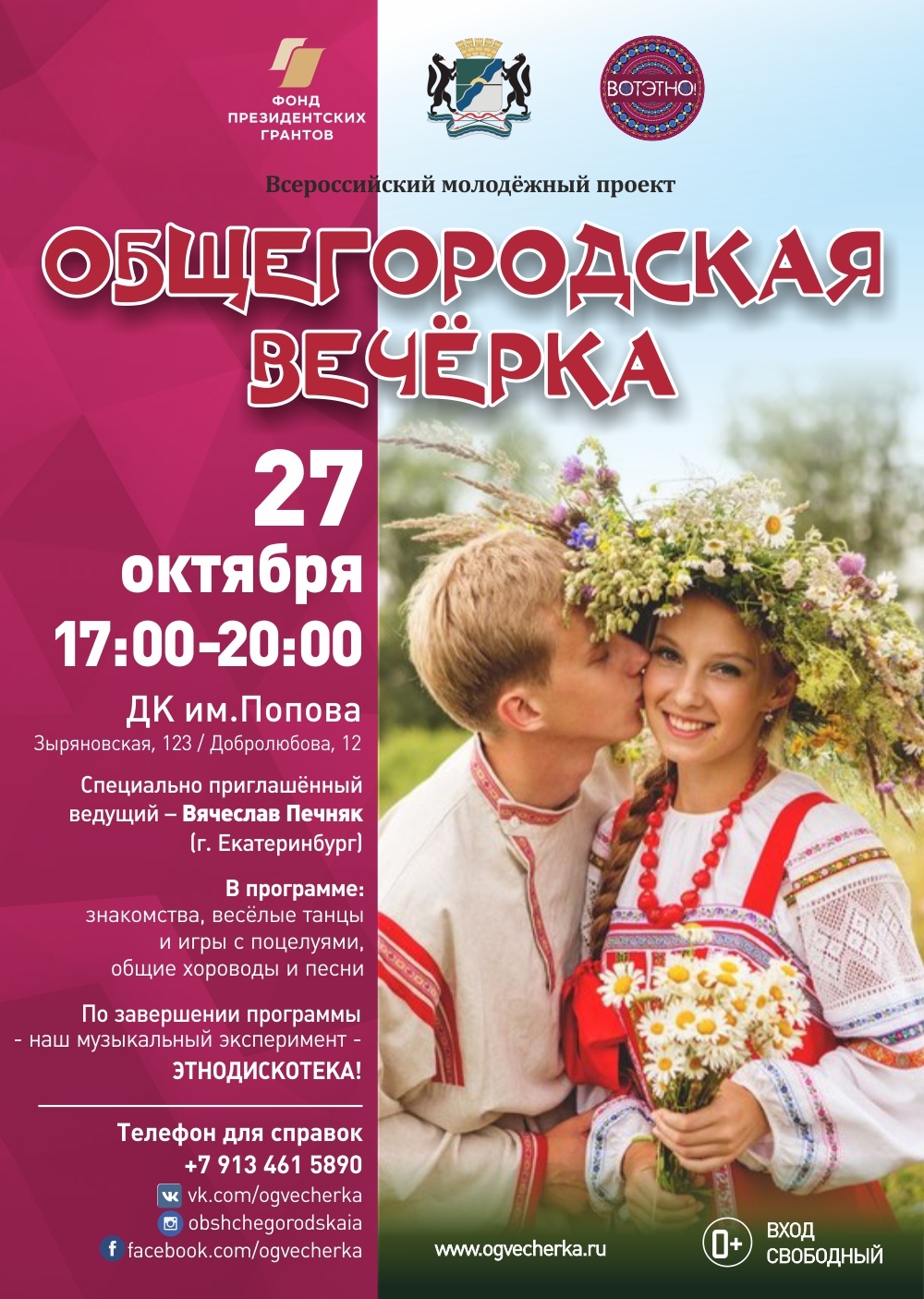 Проект «Общегородская вечёрка» - живой формат Русской традиции в современном городском пространстве. Безопасное и душевное место знакомств и встреч для всех возрастов.