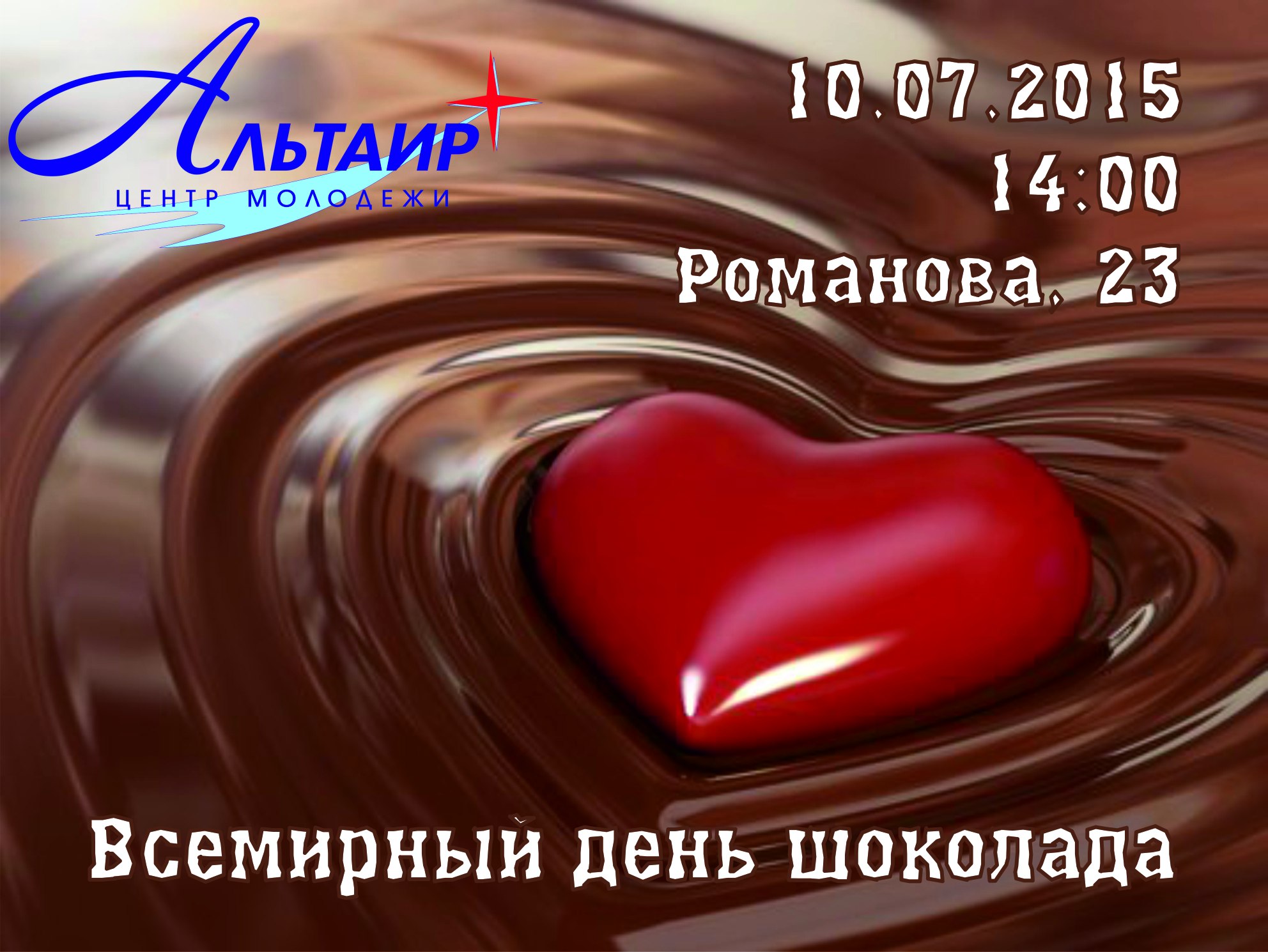 10 июля центр "Альтаир" (ул.Романова, 23) проведет развлекательную программу в честь празднования "Дня шоколада".