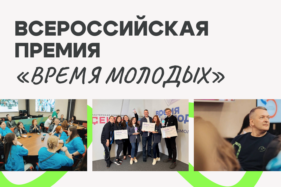Премия «Время молодых» – это общенациональная награда в сфере молодёжной политики, присуждаемая за выдающиеся достижения специалистам отрасли, лидерам молодёжных общественных объединений, представителям бизнес-структур, а также тем, кто внёс значительный вклад в развитие молодёжной политики в России.