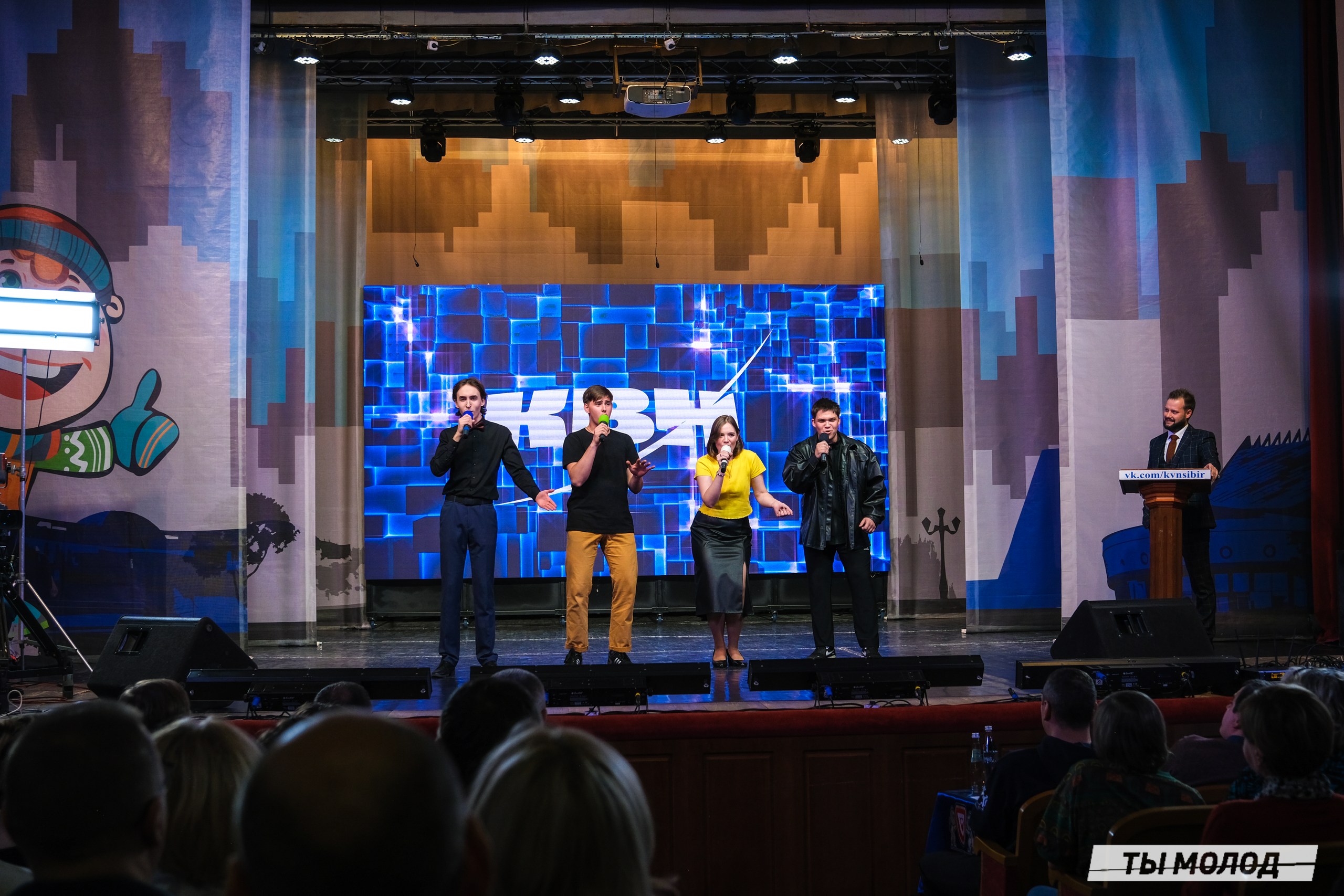 Мероприятие Полуфинал Официальной лиги «КВН-Сибирь» МС КВН 18.10.2024 проводится при поддержке Президентского фонда культурных инициатив, в рамках проекта «Кубок чемпионов. Наставники».